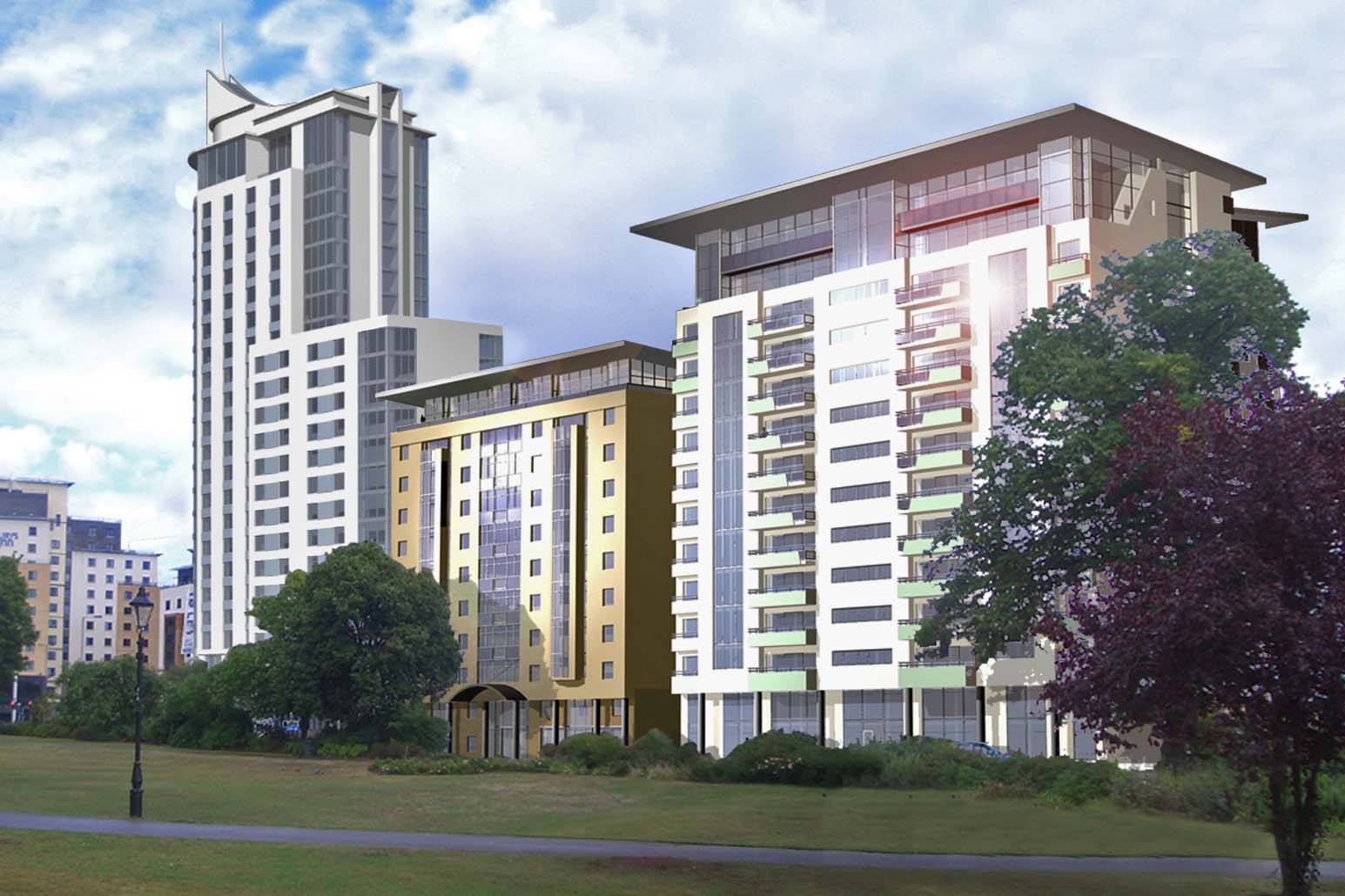mixed use scheme containing 22 storey Radisson Hotel, plus remaining blocks at 7-15 storeys for office and residential accommodation with gym and retail at ground floor