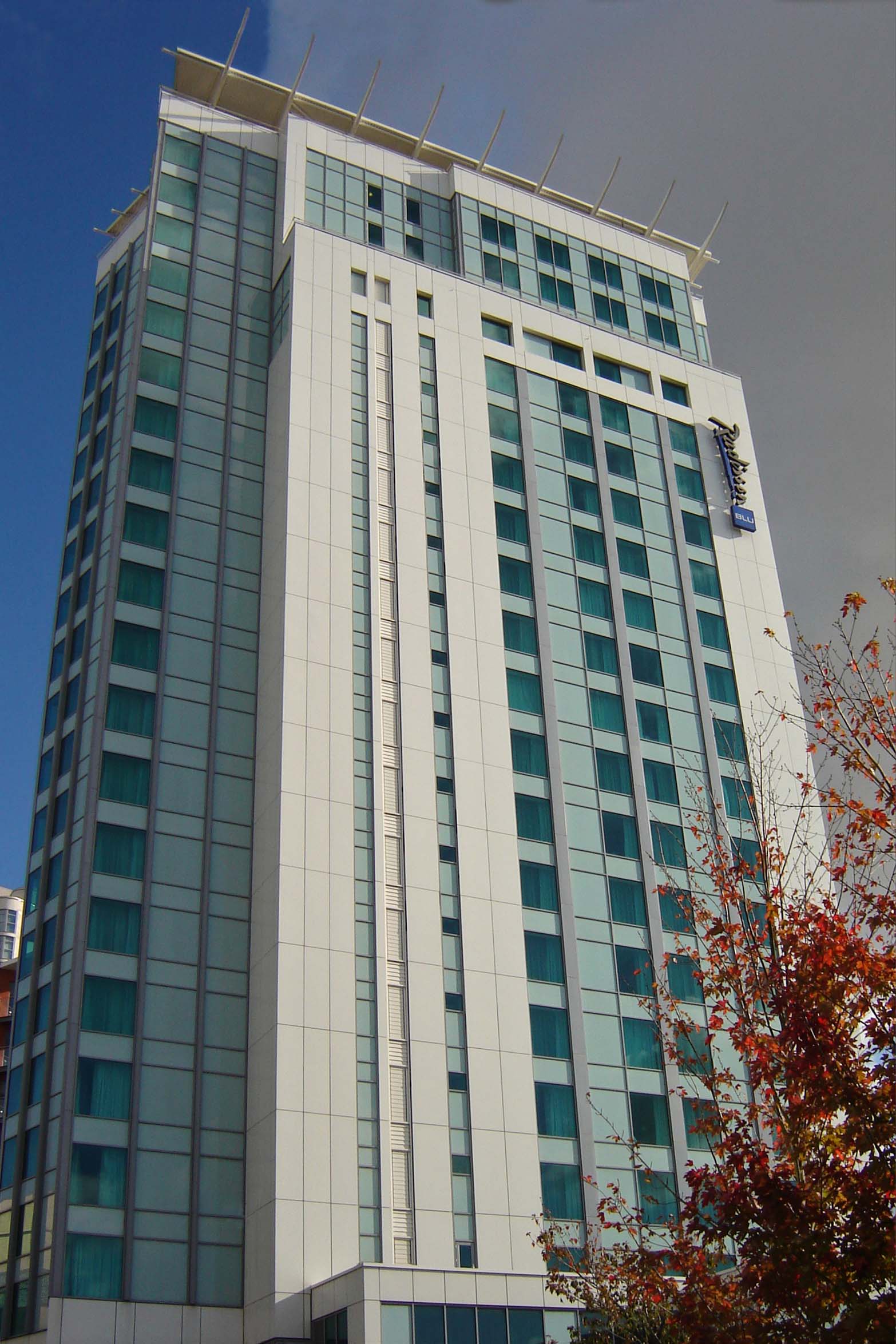 on a prominent site within the centre of Cardiff this scheme provides a 19 storey Radisson Hotel of 215 bedrooms with a residential scheme of 110 1 bed 2 bed and 3 bed units